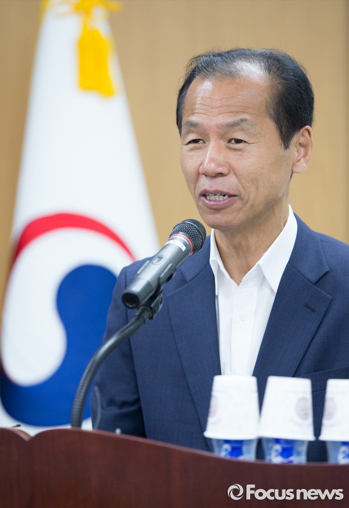 (세종=포커스뉴스) 30일 오전 세종시 정부세종청사 해양수산부 대회의실에서 열린 해양심층수 융·복합 산업 육성을 위한 해양수산부와 강원도 간 업무협약 체결식에서 최문순 강원지사가 인사말을 하고 있다.