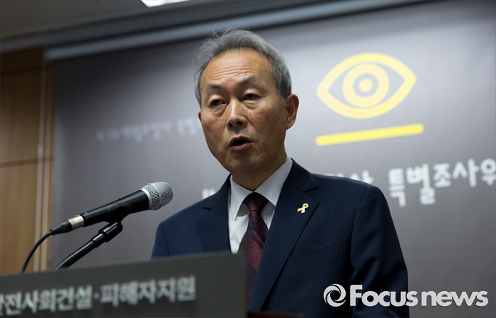 (서울=포커스뉴스) 30일 오후 서울 중구 4·16세월호참사 특별조사위원회에서 이석태 위원장이 기자회견을 하고 있다.