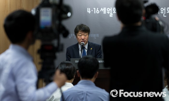 (서울=포커스뉴스) 30일 오후 서울 중구 4·16세월호참사 특별조사위원회에서 권영빈 세월호특조위 진상규명 소위원장이 기자회견 후 취재진 질문에 답하고 있다.