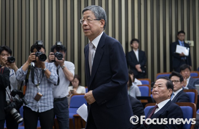 (서울=포커스뉴스) 김희옥 비상대책혁신위원장 내정자가 30일 오전 서울 여의도 국회에서 열린 의원총회에 참석해 발언대로 나서고 있다.