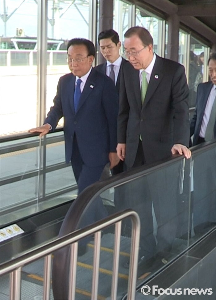 (경주=포커스뉴스) 반기문 UN 사무총장이 30일 오후 경북 경주시 신경주역에서 기차를 타기 위해 플랫폼으로 이동하고 있다. 이날 반 사무총장은 경주시에서 열린 제66차 UN NGO 컨퍼런스 참석을 마지막으로 6일간의 방한 공식일정을 마무리한 뒤, 인천국제공항을 통해 출국 할 예정이다.