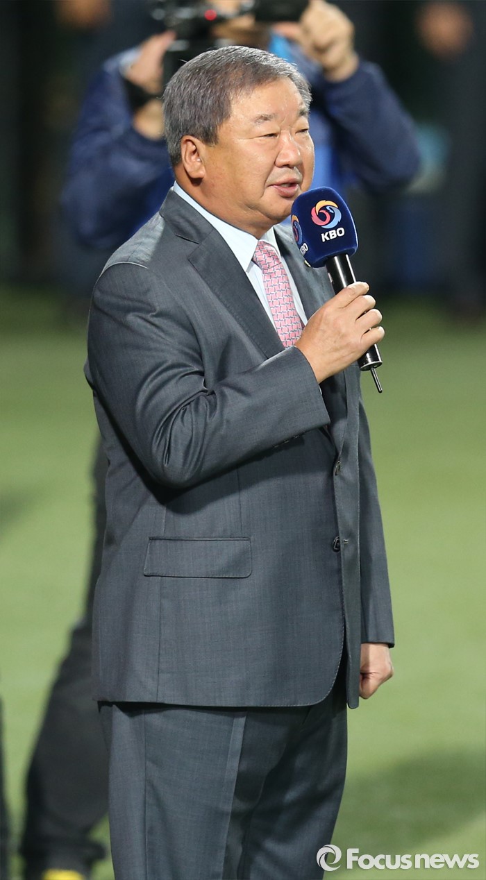 KBO는 "상대를 배려하고 규칙을 지키는 정정당당한 스포츠 정신을 통해 깨끗하고 즐거운 야구 문화를 조성하고, 법질서를 존중하는 준법 문화 정착을 위해 업무협약을 추진하게 됐다"고 의미를 설명했다.(서울=포커스뉴스) 26일 대구 시민구장에서 열린 2015 프로야구 포스트시즌 두산-삼성 한국시리즈 1차전에서 구본능 KBO 총재가 개막 선언을 하고 있다. 2015.10.26 우정식 기자