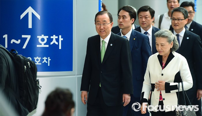 (인천공항=포커스뉴스) 방한일정을 마친 반기문 유엔 사무총장이 30일 오후 인천국제공항 KTX역에 내리고 있다.