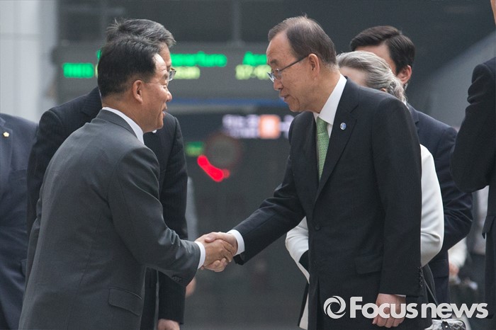 (인천공항=포커스뉴스) 방한일정을 마친 반기문 유엔 사무총장이 30일 오후 인천국제공항 KTX역에 내려 악수를 하고 있다. 반 총장은 "방한 일정과 언론에 보도된 내용, 방한 중 활동과 관련해 오해가 없길 바란다"고 밝혔다.