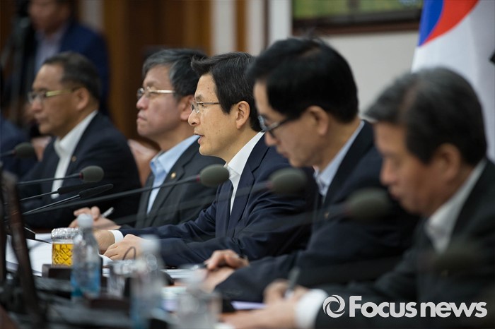 (서울=포커스뉴스) 31일 오전 서울 종로구 정부서울청사에서 열린 국무회의에 참석한 황교안(가운데) 국무총리가 모두발언 하고 있다.