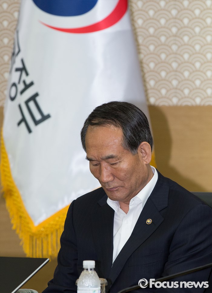 (세종=포커스뉴스) 31일 오전 세종시 정부세종청사 국무회의장에서 서울-세종 영상회의로 열린 국무회의에 참석한 박승춘 국가보훈처장이 고개를 숙인 채 생각에 잠겨 있다.