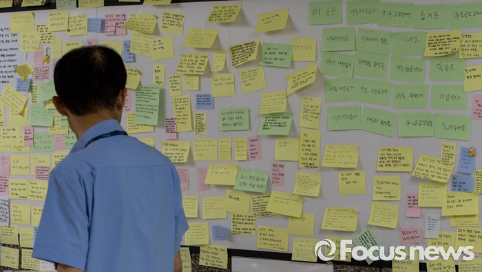 | △ 추모글 살펴보는 서울메트로 직원 |