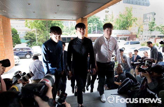 (서울=포커스뉴스) 지난 18일 20대 여성을 성폭행 하려다 미수에 그친 혐의를 받고 있는 개그맨 유상무가 31일 오전 서울 강남경찰서로 출두하고 있다.
