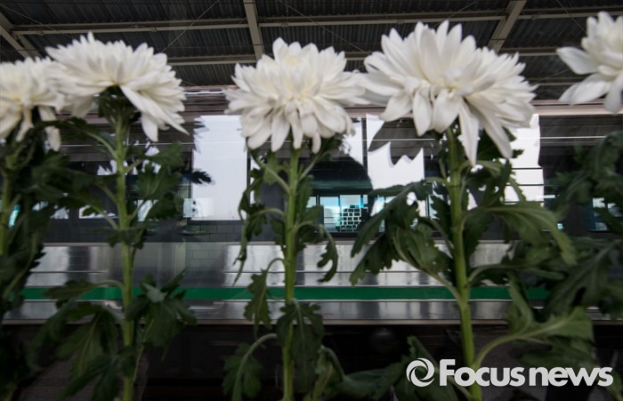 (서울=포커스뉴스) 31일 오전 서울 광진구 지하철 2호선 구의역 스크린도어 사고 현장에 시민들의 추모 국화가 붙어 있다.