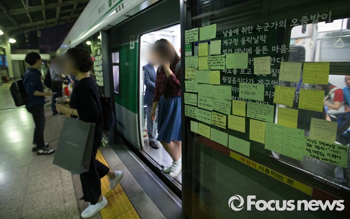 | △ 추모 쪽지 붙어있는 구의역 승강장 |