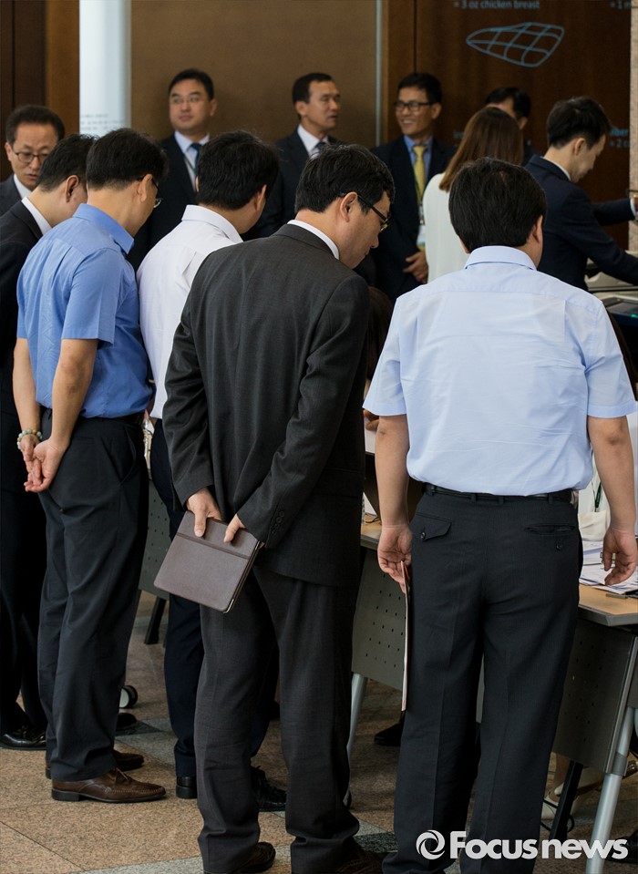 (서울=포커스뉴스) 31일 오전 서울 종로구 현대그룹 본사에서 열린 현대상선 사채권자 집회에 사채권자 및 관계자들이 입장하고 있다. 사채권자 집회는 일정 금액 이상 사채권자들의 동의를 얻어 해당 사채의 조건을 일괄 변경하는 상법 절차다.