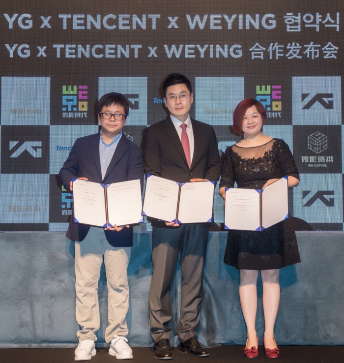 (서울=포커스뉴스) YG엔터테인먼트가 중국 기업 텐센트 그룹, 웨잉과 협약을 체결했다.