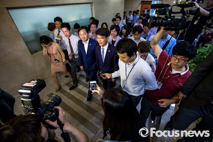 | △ 취재진 질문에 답하는 박완주 더민주 원내수석부대표 |