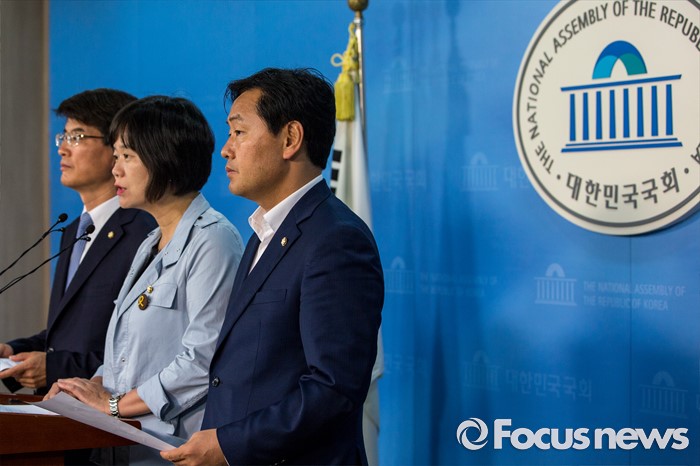 (서울=포커스뉴스) 야3당 원내수석부대표들이 31일 오후 서울 여의도 국회에서 가습기 살균제 사건, 세월호특별법 제정, 어버이연합 게이트 등 현안 공조 관련 기자회견을 하고 있다. 왼쪽부터 박완주 더불어민주당 원내수석부대표, 이정미 정의당 원내수석부대표, 김관영 국민의당 원내수석부대표.