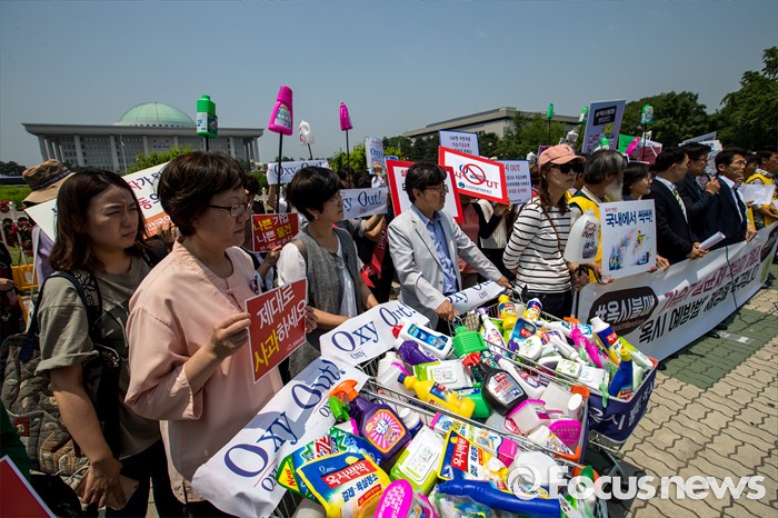 기자회견이 끝난 뒤 이들은 국회까지 옥시 제품이 담긴 카트를 끌고 행진하며 30일 개원한 20대 국회에 가습기살균제 관련 법률 제정을 촉구하는 퍼포먼스를 했다.