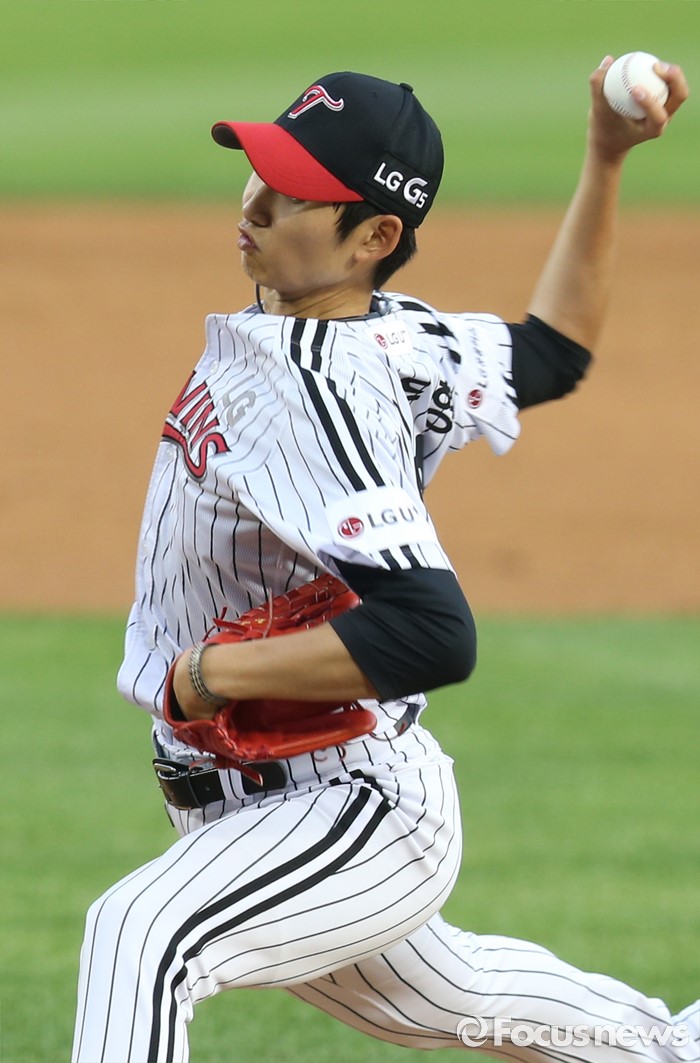 (서울=포커스뉴스) 31일 서울 잠실구장에서 열린 2016 프로야구 KIA-LG 경기에서 1회초 LG 선발투수 이준형이 투구하고 있다.