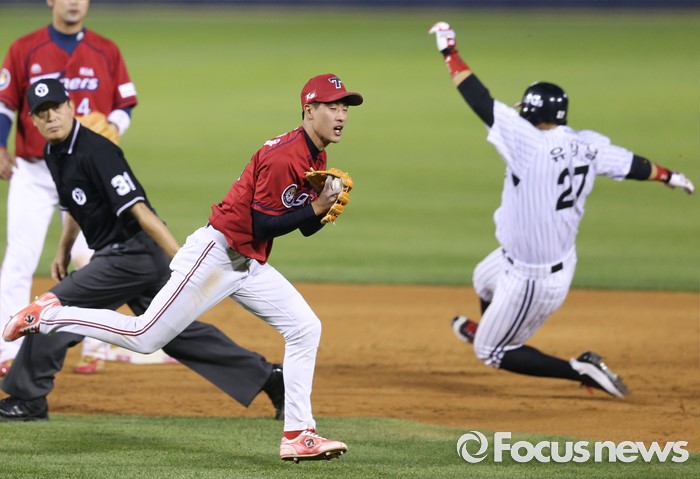 (서울=포커스뉴스) 31일 서울 잠실구장에서 열린 2016 프로야구 KIA-LG 경기 4회말 1사 1,2루에서 KIA 유격수 강한울이 LG 오지환의 타구를 잡다 실책을 하고 있다.