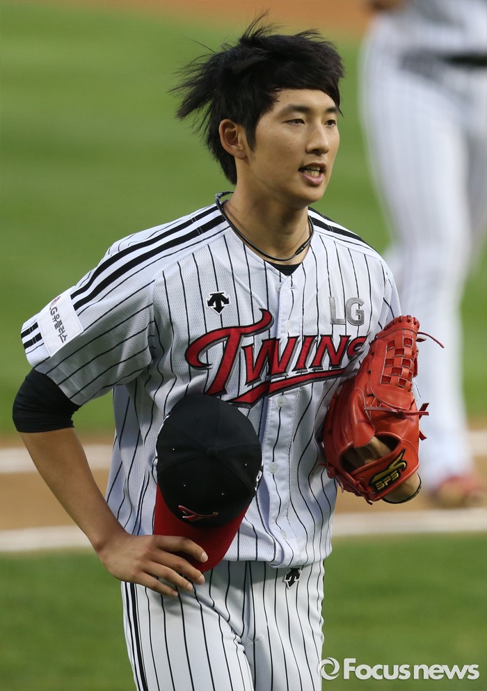 (서울=포커스뉴스) 31일 서울 잠실구장에서 열린 2016 프로야구 KIA-LG 경기에서 LG 투수 이준형이 2회초 수비를 3자 범퇴로 막고 덕아웃으로 뛰어가고 있다.