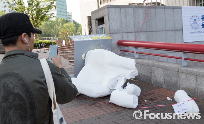 | △ 파손된 홍대 일베 조형물 |
