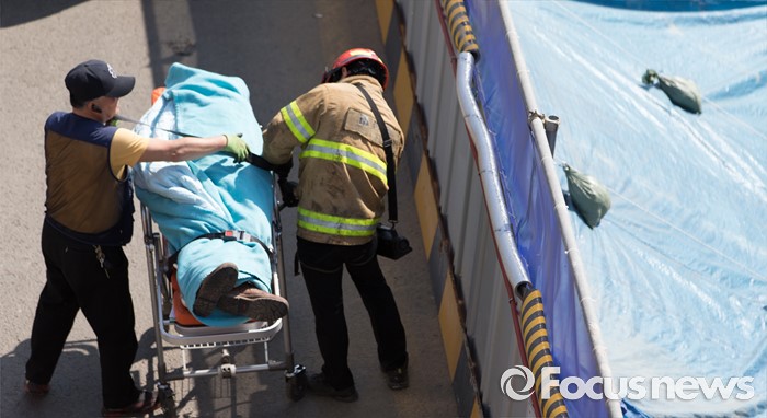 (남양주=포커스뉴스) 1일 오전 7시 20분께 경기 남양주시 진전읍 금곡리 진접석 지하철 공사현장이 붕괴되는 사고가 발생해 소방대원들이 구조작업을 하고 있다.