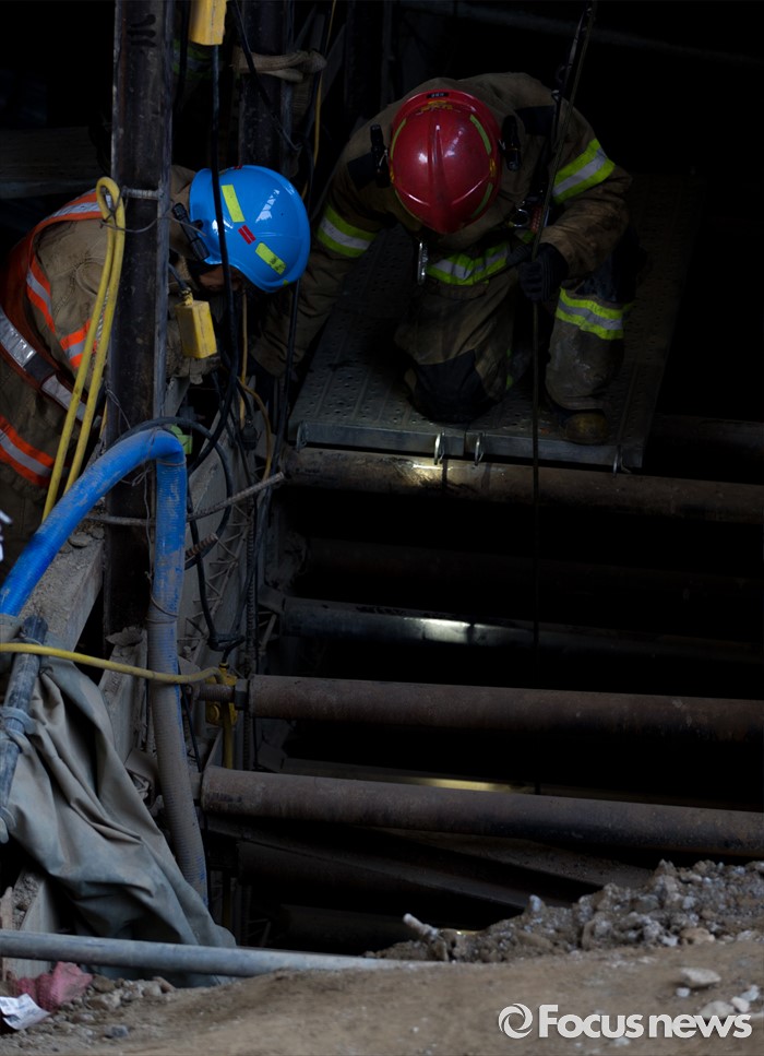 (남양주=포커스뉴스) 1일 오전 7시 20분께 경기 남양주시 진전읍 금곡리 진접석 지하철 공사현장이 붕괴되는 사고가 발생해 소방대원들이 구조작업을 하고 있다.