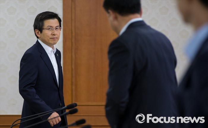 (서울=포커스뉴스) 1일 오전 서울 종로구 정부서울청사에서 열린 법질서관계장관회의에 황교안 국무총리가 참석하고 있다.