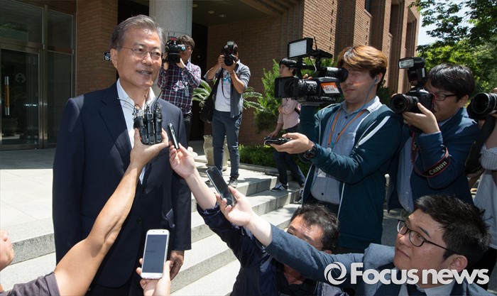 (청주=포커스뉴스) 문재인 더불어민주당 전 대표가 1일 오전 충북 청주 청원구 천주교 청주교구를 방문, 장봉훈 주교와 면담을 마치고 청주교구를 나서며 취재진의 질문에 답변하고 있다.