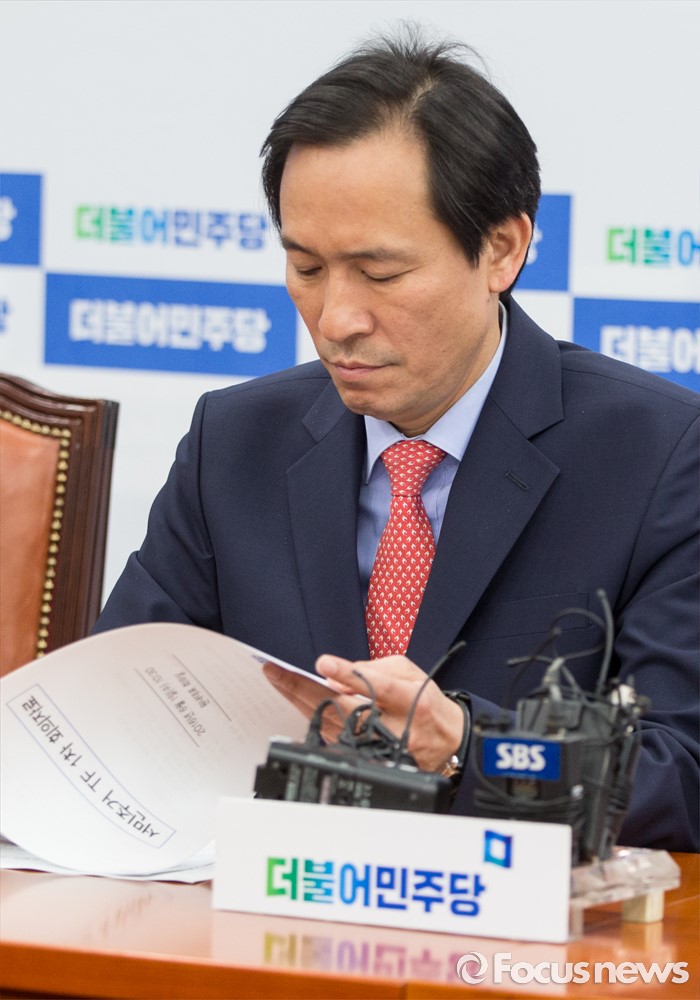 (서울=포커스뉴스) 우상호 더불어민주당 원내대표가 1일 오전 서울 여의도 국회 원내대표실에서 열린 서민주거TF 발족식에서 서민주거 관련 자료를 보고 있다.