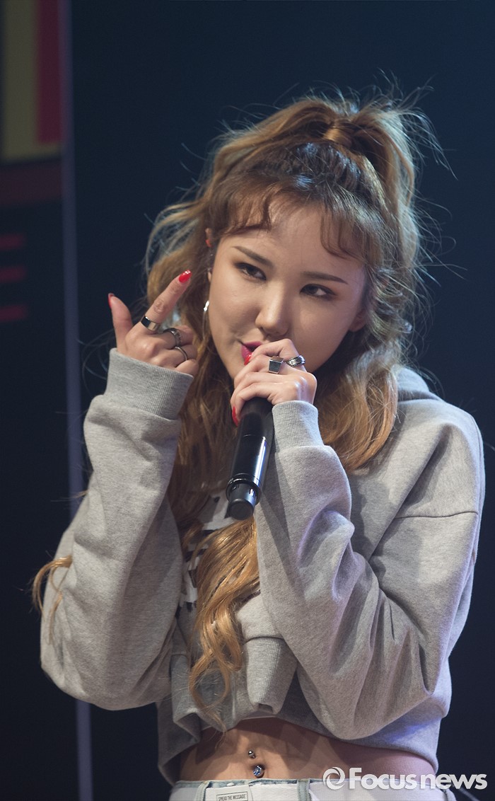 (서울=포커스뉴스) 1일 오전 서울 강남구 일지아트홀에서 열린 걸그룹 EXID의 정규 1집앨범 'STREET' 발표 쇼케이스에 참석한 멤버 LE가 무대를 선보이고 있다.