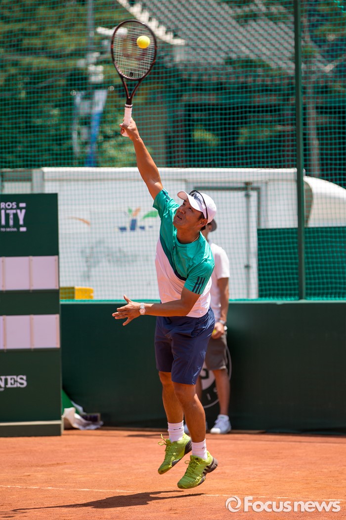 (서울=포커스뉴스) 이형택 전 테니스 국가대표가 1일 오후 서울 중구 서울광장에서 열린 '롤랑가로스(프랑스오픈) 인더시티'에서 대학생들과 스페셜 매치 시합을 하고 있다.