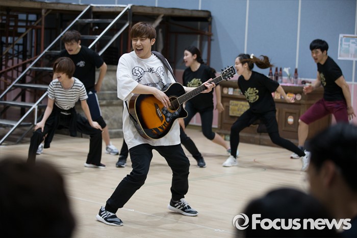(서울=포커스뉴스) 인피니트 성규가 1일 오후 서울 종로구 아리온 연습실에서 열린 뮤지컬 '올슉업' 연습공개 현장에서 연기를 선보이고 있다.