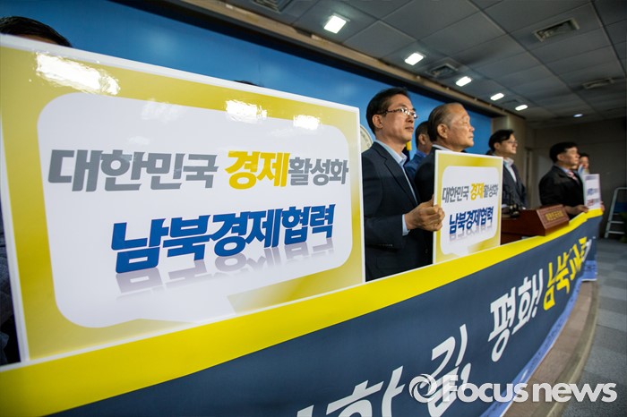 (서울=포커스뉴스) 2일 오후 서울 여의도 국회에서 열린 '남북경협기업 생존대책마련 촉구 기자회견'에 참석한 남북경협기업비상대책위원회 관계자들이 정부에 개성공단 재개 및 금강산 관광 재개 등을 촉구 하고 있다.