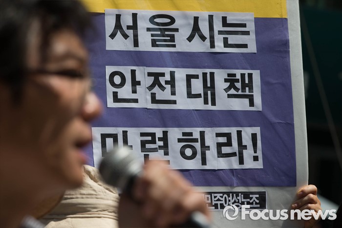 민주노총 여성연맹과 은성PSD 노조는 이날 서울시청 앞에서 기자회견을 열고 "안전문을 보수·관리하는 근로자들은 죽을 뻔한 경험이 수차례 있다고 한다. 언제 사상사고가 일어날 지 모르는 상황"이라며 이같이 밝혔다.