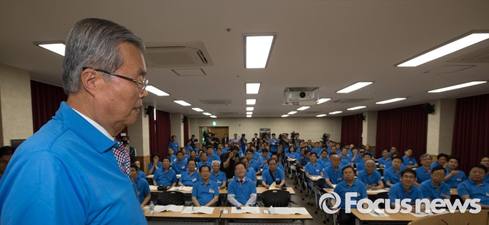 | △ 충북 당직자 워크숍 참석한 김종인 대표 |