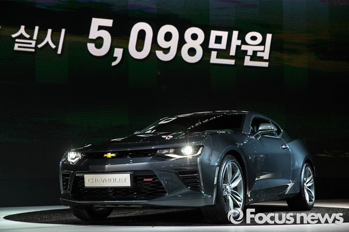 (부산=포커스뉴스) 2일 오전 부산 해운대구에 위치한 벡스코에서 열린 '2016 부산국제모터쇼'에서 쉐보레 '카마로 SS' 차량이 소개되고 있다.