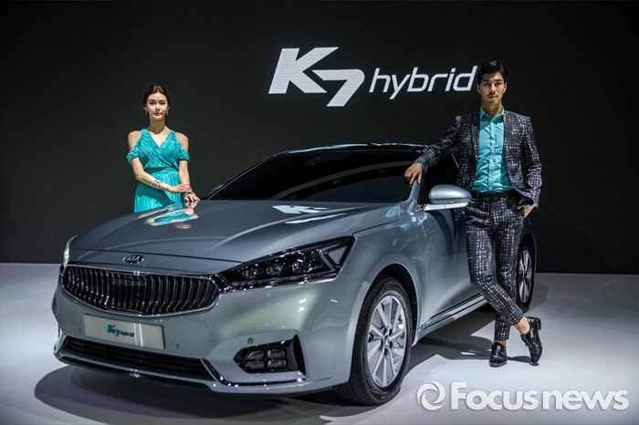 (부산=포커스뉴스) 2일 오전 부산 해운대구에 위치한 벡스코에서 열린 '2016 부산국제모터쇼'에 현대 'K7 하이브리드' 차량이 전시되어 있다.