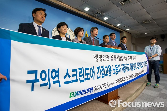 (서울=포커스뉴스) 이인영 더불어민주당 을지로위원회 의원이 2일 오후 서울 여의도 국회에서 구의역 스크린도어 간접고용 노동자 사망사고 재발방지 법안발의 관련 기자회견을 하고 있다.