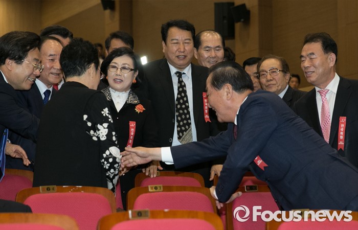 (서울=포커스뉴스) 2일 오후 서울 여의도 국회 의원회관에서 열린 새누리당 4차 전국위원회에 참석한 서청원 전 최고위원이 참석자들과 인사하고 있다.