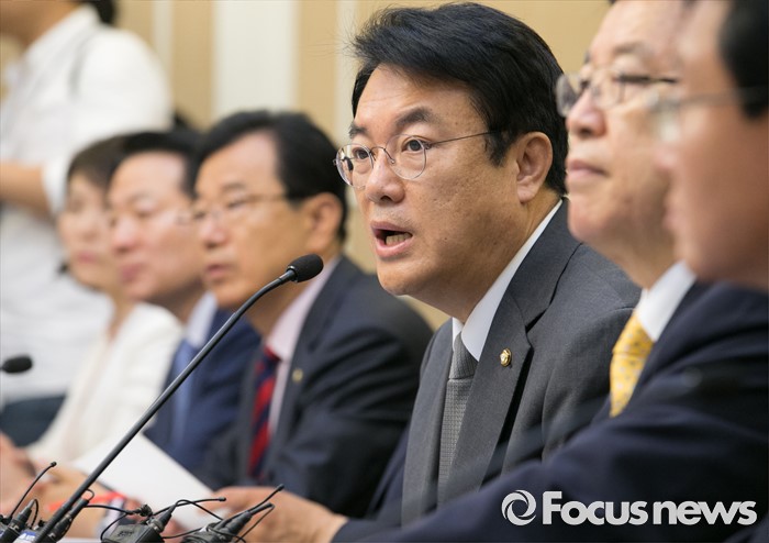 (서울=포커스뉴스) 2일 오전 서울 여의도 국회 귀빈식당에서 열린 미세먼지 대책 관련 당정협의에 참석한 정진석 새누리당 원내대표가 모두발언을 하고 있다.