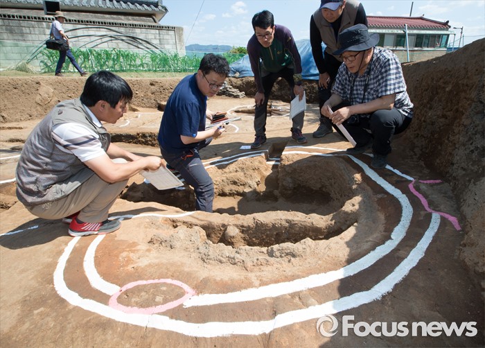 (충주=포커스뉴스) 충북 충주 칠금동 392-5번지 일대에서 백제 제철유적이 발견된 가운데 2일 현장에서 발굴조사 현장설명회가 열렸다. 학계관계자들이 제철유적을 살피고 있다.