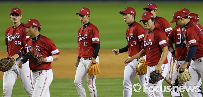 (서울=포커스뉴스) 1일 서울 잠실구장에서 열린 2016 프로야구 KIA-LG 경기에서 승리해 3연패에서 탈출한 KIA 선수들이 덕아웃으로 향하고 있다