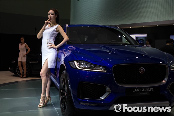 (부산=포커스뉴스) 2일 오전 부산 해운대구에 위치한 벡스코에서 열린 '2016 부산국제모터쇼'에서 재규어의 SUV 'F-PACE' 가 소개되고 있다.