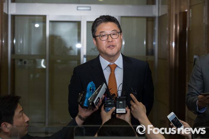 (서울=포커스뉴스)김정범 현대상선 비상경영실장이 2일 오후 서울 종로구 현대상선 본사에서 열린 'G6' 해운동맹 회원사 협렵방안 회의가 끝난 뒤 결과를 설명하고 있다.