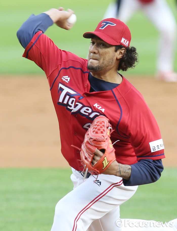 (서울=포커스뉴스) 1일 서울 잠실구장에서 열린 2016 프로야구 KIA-LG 경기에서 1회말 KIA 선발투수 헥터가 투구하고 있다.