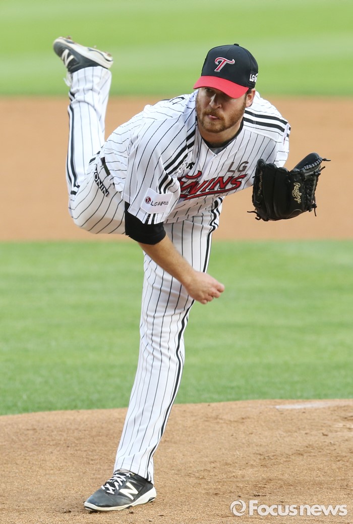 (서울=포커스뉴스) 1일 서울 잠실구장에서 열린 2016 프로야구 KIA-LG 경기에서 1회초 LG 선발투수 코프랜드가 투구하고 있다.