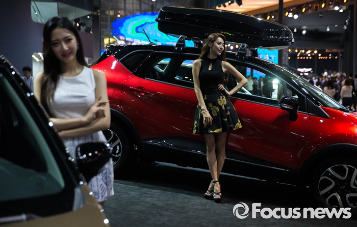 (부산=포커스뉴스) 2일 오전 부산 해운대구에 위치한 벡스코에서 열린 '2016 부산국제모터쇼'에서 레이싱걸들이 취재진을 향해 포즈를 취하고 있다.