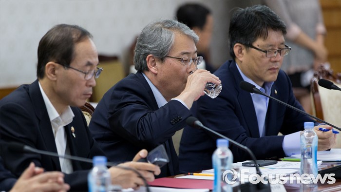 (서울=포커스뉴스) 2일 오전 서울 종로구 정부서울청사에서 임종룡 금융위원장이 국가정책조정회의에 참석해 물을 마시고 있다.
