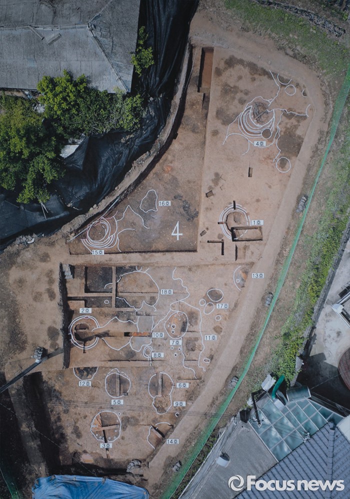 (충주=포커스뉴스) 충북 충주 칠금동 392-5번지 일대에서 백제 제철유적이 발견된 가운데 2일 현장에서 발굴조사 현장설명회가 열렸다. 사진은 제철문화재 흔적 배치도.
