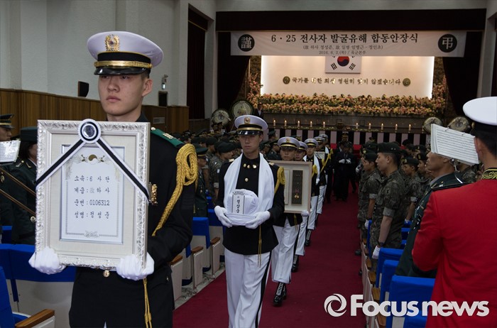 (대전=포커스뉴스) 2일 오전 대전 유성구 국립대전현충원에서 6.25 전쟁 전사자 발굴유해 3위(位) 합동안장식이 거행되고 있다.