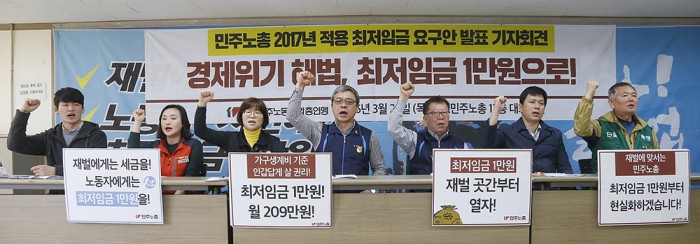 또 "임금 노동자 대부분이 한 가정을 꾸리고 있는 가장인 현실을 반영해 최저임금을 결정할 때 1인가구 기준이 아닌 2~3인 가구의 생계비를 기준으로 해야 한다"고 주장했다.